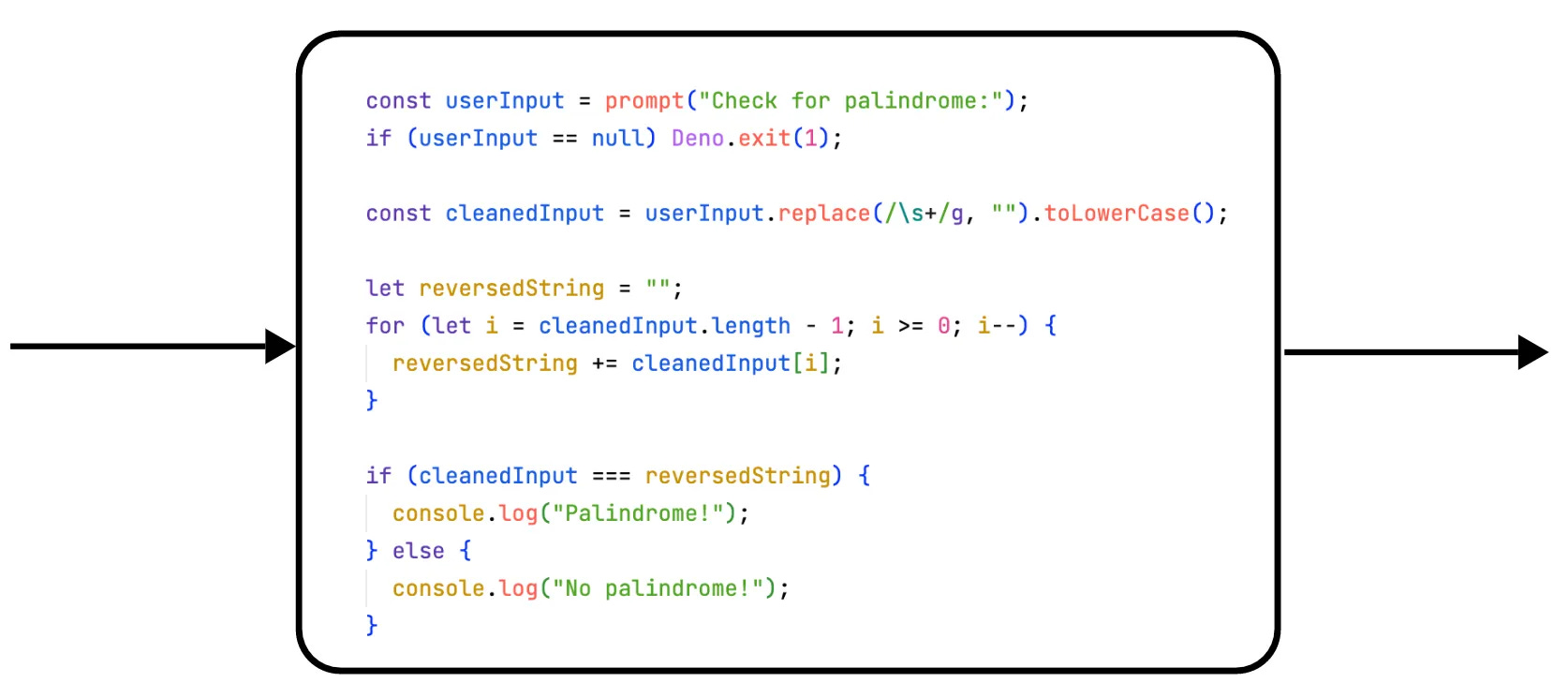Finally the reversed string is checked against the cleaned input string. If they are the same, then the input string is a palindrome. This result is printed to the console."